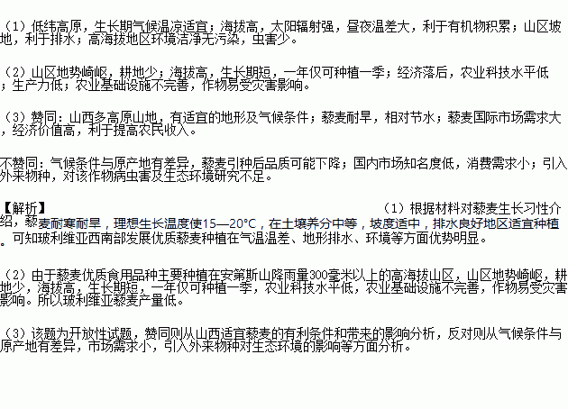 (3)我国山西省欲大规模引种藜麦,打击藜麦种植基地,你是否赞同,请说明理由。