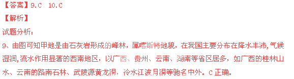 9.甲地为峰林,同类景观多出现在哪些省区( )