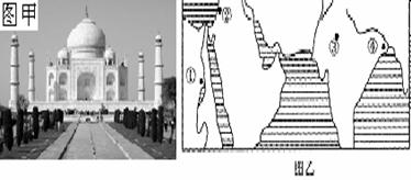 读甲乙两图,图甲所示著名的古代建筑由白色大理石筑成。回答题。![]()
