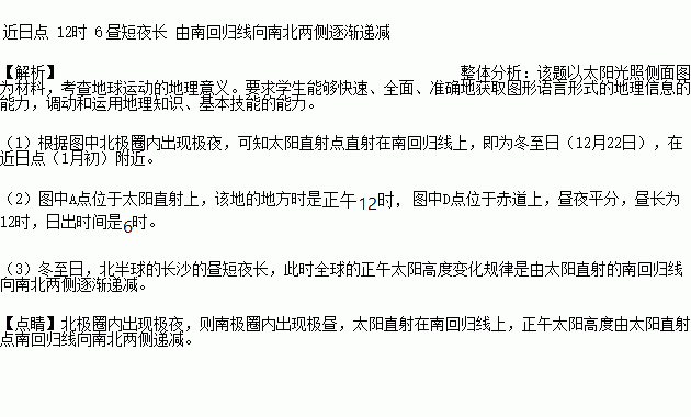 (3)此时长沙的昼夜长短状况是________。此时全球的正午太阳高度变化规律是__________。