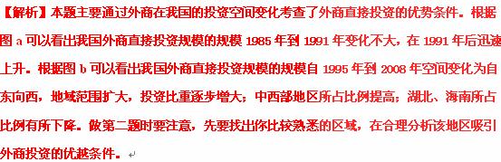 (2)分析图示资料,以2008年某区域为例分析吸引外商直接投资优势条件。(10分)