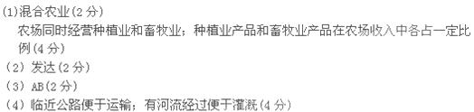 (1)该农场的农业地域类型 (2分)判断理由是 (4分)