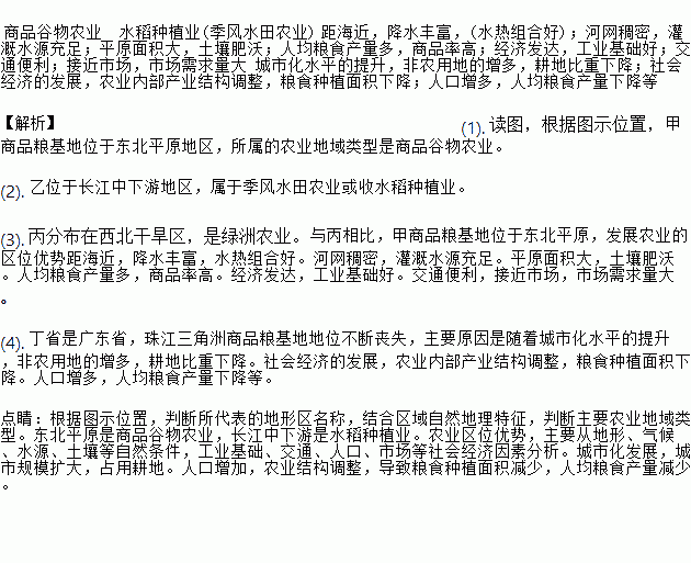 (3)简述丁省珠江三角洲商品粮基地地位不断丧失的原因__________。