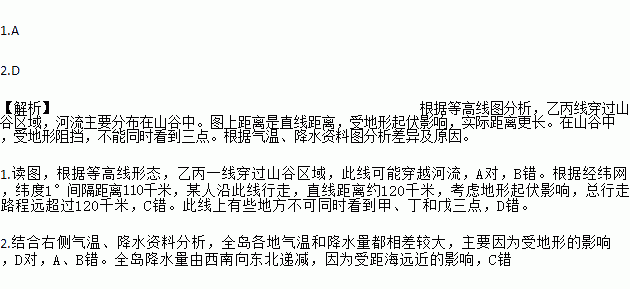 2.下列关于该岛气温和降水的分布中,叙述正确的是( )