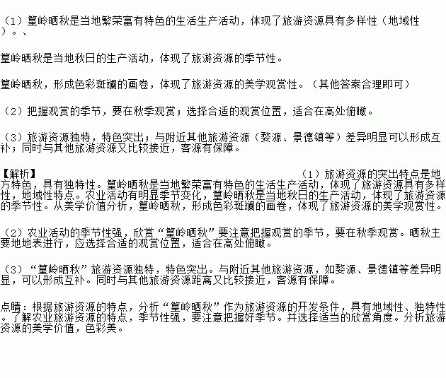 (1)“篁岭晒秋”体现了旅游资源的哪些特点?(列举两点并加以说明)