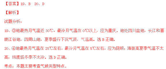 图10中的四地代表拉萨、昆明、重庆和贵阳,读图完成19-20题。