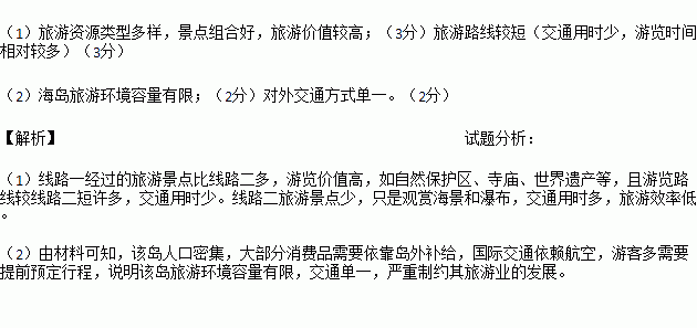 (1)某国际旅游团到该岛进行一日游,在线路一和线路二中选择了线路一。运用旅游地理知识,分析线路一的优势___________。