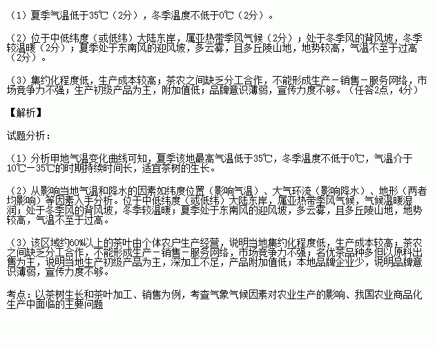 (1)试从气温角度分析甲区域成为我国主要产茶区的原因。(4分)