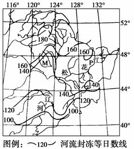 下图为“东北地区河流封冻等日数线分布图”,读图完成下列问题。。