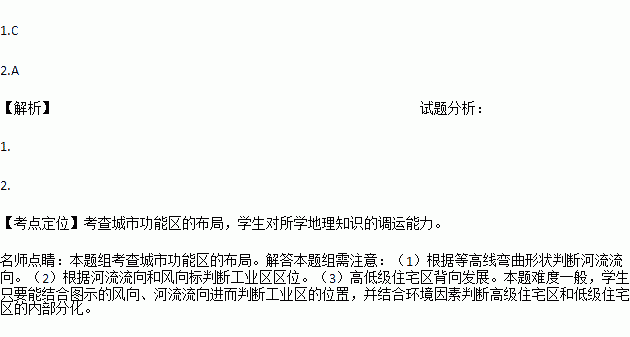 下图为某城市功能分区示意图,图中字母代表功能区,该城区有一条河流穿过。据此回答下列各题。
