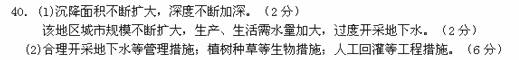 (l)指出1986~2002年该地区地面沉降的空间变化特点,并分析其人为原因。(4分)