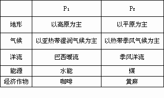 1.P1.P2两区域所在国家,在经济发展方面有许多共性特征,主要表现在