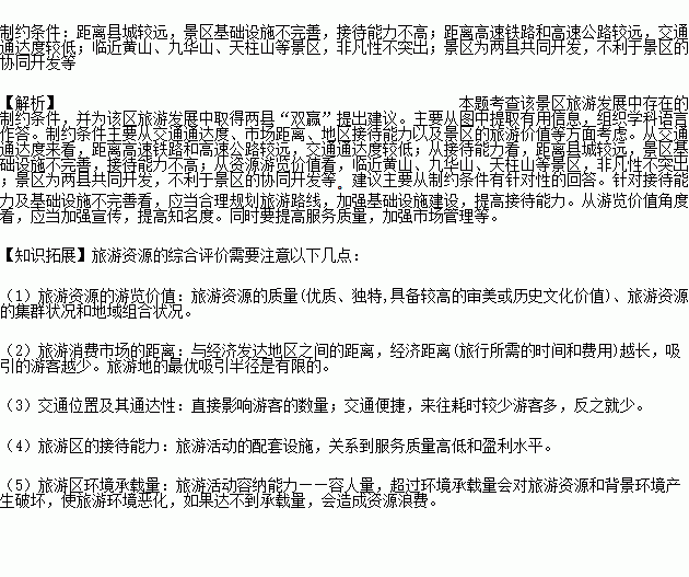 简述天堂寨风景区发展中存在的制约条件,并为罗田县和金寨县为实现在竞争中的“双赢”提出建议____________。