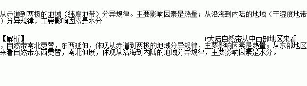 分析P大陆自然带分布所体现的地域分异规律,并说明其主要影响因素_______。