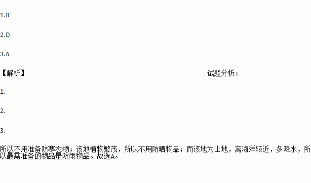 A. 防雨物品 B. 防晒物品 C. 防寒衣物 D. 薄衣短衫