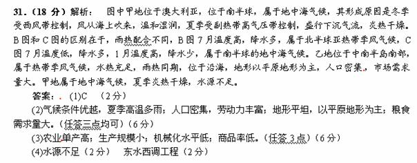 (2)简要分析乙地农业生产发展的主要区位因素。(6分)