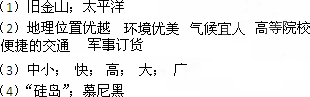 (1)“硅谷”北临美国西部最大的港口城市 (1分),西临浩瀚的 洋(1分)。