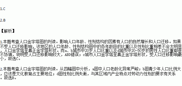 1.人口的年龄、性别结构受人口迁移影响明显的一组城市是( )