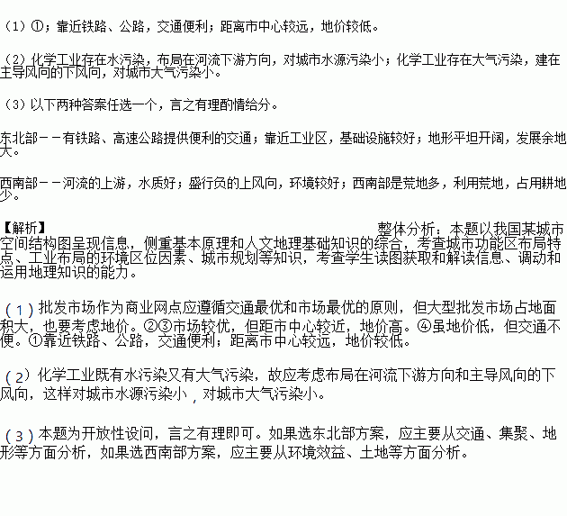 (3)随着城市化的发展,该城市规划建设新城,现有在东北部和西南部建设新城的两种方案,你支持哪一种方案?阐述你的理由___________。
