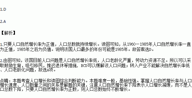 1.只考虑人口自然增长,该国图示阶段人口最多的年份是