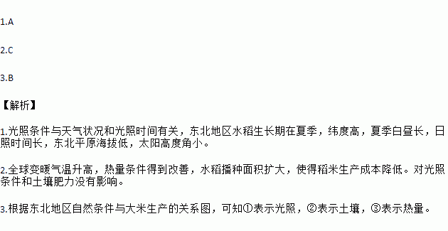 3.图中序号按光照、热量、土壤顺序排列正确的是( )