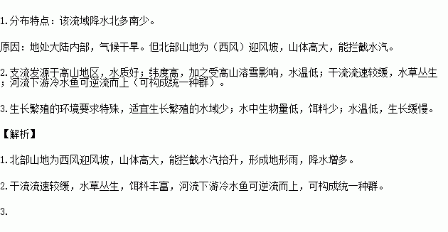 (1)根据支流的分布特征,分析图示额尔齐斯河流于降水分布特点及成因。(8分)