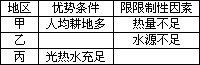 (1)比较甲、乙、丙三个商品粮基地,并填表: