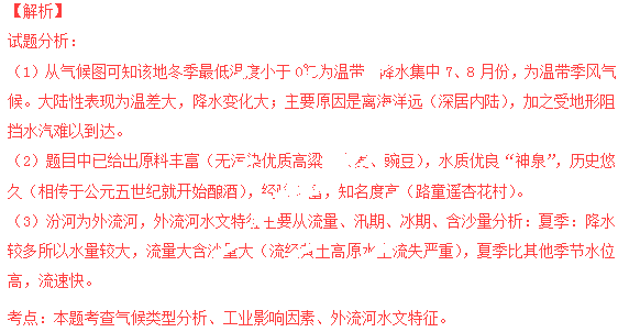 (5)分析杏花村发展酿酒业的有利的区位因素。(8分)