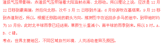 | A.需要穿越热带雨林 | B.随着雨季南北移动 |