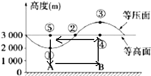 解:(1)同一地点高度越高气压越低,故等压面位置越偏上气压值越低,反之越高.同一等压面上压强相等.④的等压面位置最偏下,故压强最高.