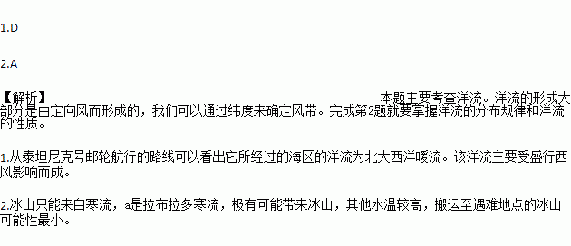 1.泰坦尼克号邮轮航行途中大部分航段所遇洋流的主要成因是