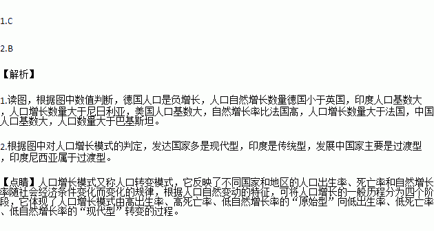 下图示意某年世界部分国家的人口状况。读图完成下列各题。