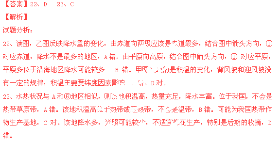 2.如果华北地区的水热状况与D和④地区比较相似,则华北地区情况叙述正确