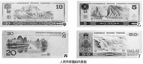钱币被称为“国家名片”,人民币则是中国的名片。在已经发行的数套人民币中,我国一些著名的风景被相继印上了它们的背面。读图回答下题。