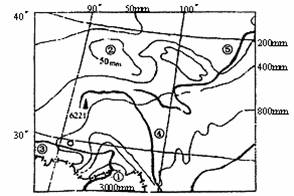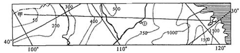 下面的某区域图中,点虚线是年等降水量线,读图回答问题。
