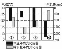图中①、②、③、④代表的气候类型正确的是 ( )