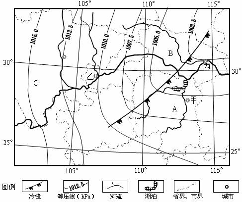 人口、资源、环境与经济协调发展是科学发展观的必然要求。充分发挥地区优势,加强区域联系,协调人地关系,是实现区域可持续发展的重要保证。下图表示的是我国某地区及该地区某时近地面天气形势。回答。