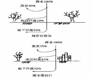 下图是“某城市建设前后水量平衡示意图”,读图回答18~19题。