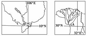 读“世界两条大河的三角洲略图”,完成8~10题。