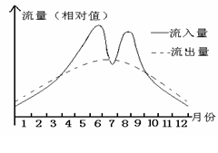 右图为 我国某水库流入水量与流出水量年内变化情况,读后回答16~17题。
