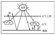A.到达地面的太阳辐射——A B.大气的反射作用——D