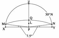 下图P为北极点,弧MZN为夜弧,∠MPX和∠NPY为7.5°,则下列判断正确的是( )