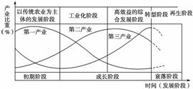 区域的发展一般可分为三个阶段:初期阶段、成长阶段和衰落阶段。初期阶段主要表现为以传统农业为主体,成长阶段可分为工业化阶段和高效益的综合发展阶段。结合下图,回答8~9题。