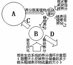 C A生物 B土壤 C供给养分 D淋溶作用流失养