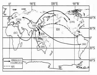 (1)中国商品出口的主要地区是亚洲、_____________洲和_____________洲。(4分)