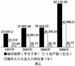 (2)从图乙中可以看出,山东省城市化快速推进主要表现在____________________、________________________两个方面。