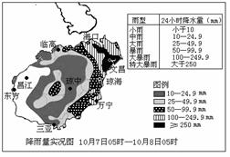 2010年9月30日至10月9日,持续的强降雨使海南省遭受了历史上罕见的洪涝灾害。读下图回答题。