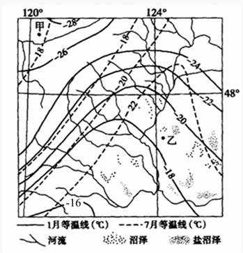 (2)试分析甲地冬季气温比乙地低的原因。
