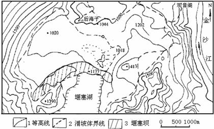 (1)简要说明图中堰塞湖的成因。(2分)