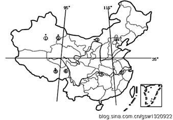 10、图中①、②、③、④依次所表示的地理事物,正确的是: